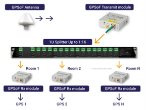 RF over Fiber 2.5GHz for GPS is designed for scenarios where location and time signals need to be distributed from a Donor antenna to RF sheltered locations, and where distances preclude transmission over coaxial cables due to the cable loss. Using WDM technology such GPS signals can be transmitted over the same fiber as other RF signals such as cellular communication signals. This is an attractive solution for mobile communications companies using the same fiber infrastructure for GPS and cellular signals.